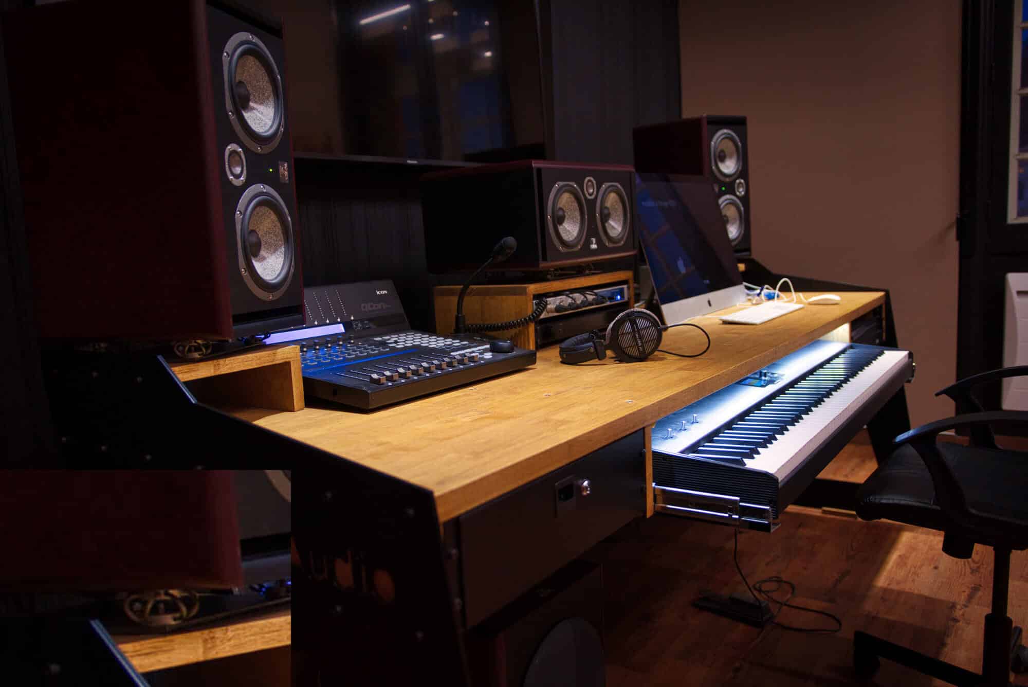 Notre fer de lance, qu’il s’agisse de la vente de matériels audio, comme de nos réalisations acoustiques, est assurément, l’ultra personnalisation, pour ceux qui souhaitent avoir des réponses ajustées à leurs usages. Le meuble de studio, concentre ainsi toutes les attentions puisqu’il sera un investissement à long terme, au coeur du studio et support de tout l’équipement. Ergonomique et aux usages parfois dédié, mais souvent divers et varié, dans une époque où le compositeur est à la fois, mixeur, technicien, formateur…