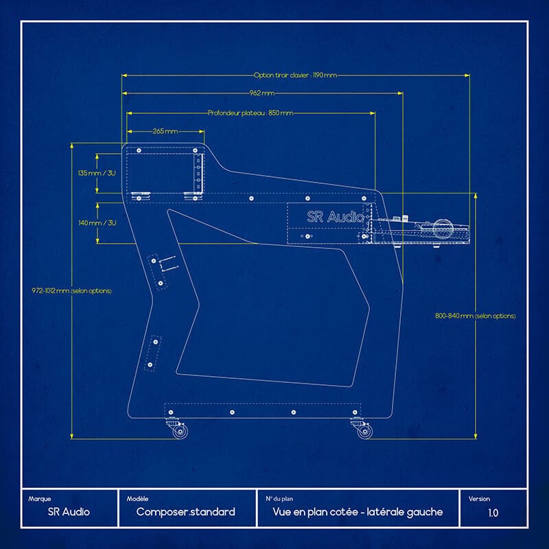 La gamme « Composer » de SR Audio vous propose une série de meubles de studio designs, durables et fonctionnels que vous pourrez personnaliser. Flanc thermolaqué, à la couleur de votre choix avec la possibilité d’un marquage personnalisé (nous contacter).