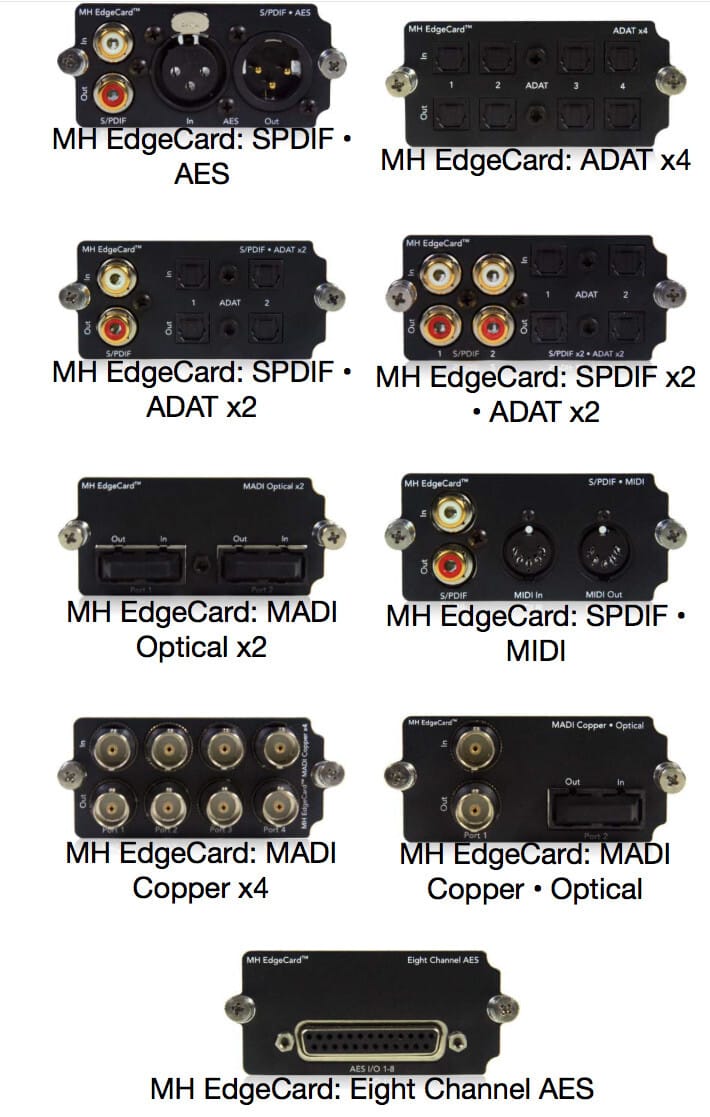 MH EdgeBus — Le bus d’expansion mise en oeuvre sans efforts ni câbles supplémentaires, pour ajouter des cartes audio parmi la gamme de la marque, avec une bande passante qui garantit une latence nulle entre les différents périphériques jusqu’à 16 interfaces.