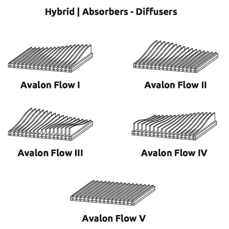 Artnovion Avalon Flow | Concept est un panneau à la fois absorbant et diffusant dont les motifs se déclinent en 5 variations.